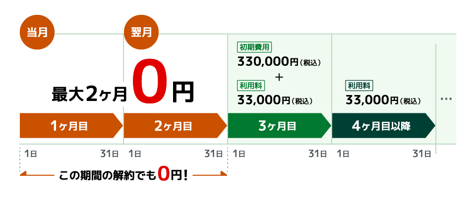 ご契約いただいた当月・翌月分は無料でご利用いただけます。